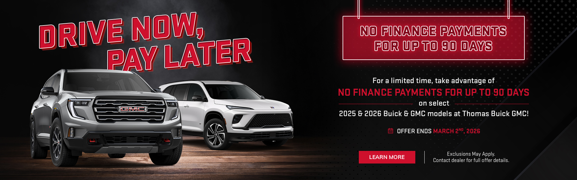 ThomasBuickGMC-NewBanner-DriveNow,PayLater-D1-V1