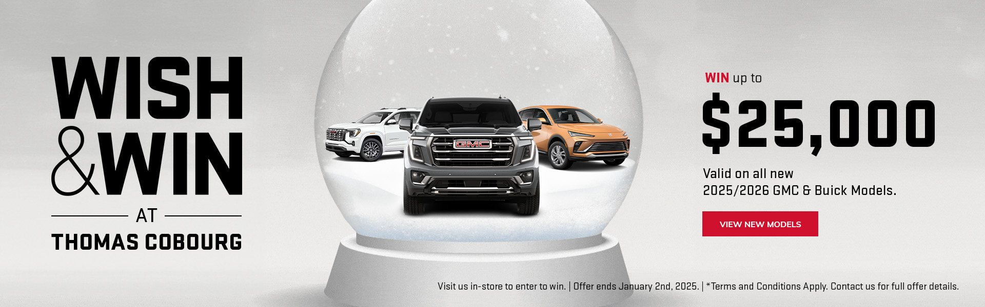 This December, Thomas Buick GMC in Cobourg is making the holidays extra special with our Wish & Win Event. Stop by, take your turn, and walk away with a prize — everyone wins!